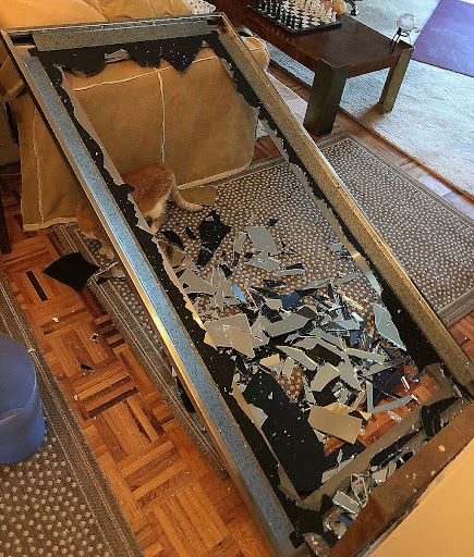 But nope -- I'm on own with this $800.00-plus steel frame with bits of glass still stuck in the frame. (I also twice contacted the company that actually made the Modern Leaning Mirror, Bell Manufacturing in MN, and never heard back, despite their welcoming "Contact Page". I guess they're welcoming if you're buying, but not asking for help with their product.