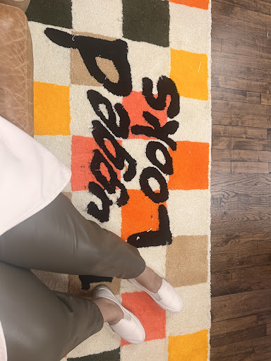 The Class: The class is 2 hours. Your teacher walks you through the basics of rug tufting and provides you with all the materials you need—Sarah Grace, our teacher, even drew our designs for us. We started practicing our by tufting our name, then we just tried to color within the lines with a rug tufting gun. SG helped us through the entire process giving us pointers and one on one feedback. They return our rugs in two weeks after they put the professional, finishing touched on it!