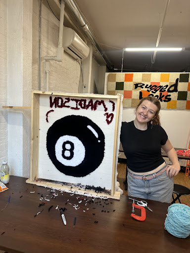I have been wanting an 8 ball rug for forever, and I finally got the chance to make my own version at Rugged Looks in Brooklyn, thanks to S’more’s Tried and True Lottery!