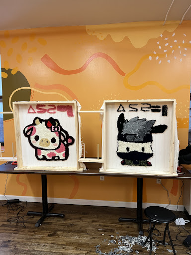 Read moreThis was an extremely fun arts and crafts activity. I mean making your own rug with a design that you can choose? That’s pretty awesome. It’s something different from painting or pottery class. It’s a cute space and she has a bunch of different colored yarn.