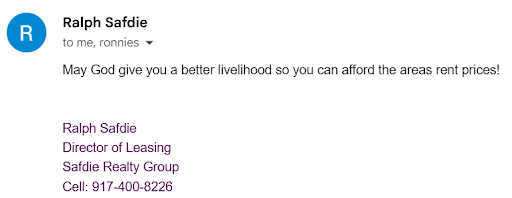 Ralph gave me the chance of a lifetime. If it wasn’t for his kind, humble and positive attitude I don’t think I would’ve found the most amazing studio apt IN NYC on a budget. As I mentioned before, I was running to the final viewing. Ralph was so accommodating to me and waited until I came in. I knew it was the one after so many uncomfortable encounters with shady people. RALPH knows what he is doing. He is professional, reliable and very knowledgeable. As a first time renter I’ve never felt so safe and familiar with him. I owe him so much gratitude and love for his family and the hard work they put forth into this crazy unpredictable market. Iam so thankful that we were able to work with one another. Will be in touch with him again! …maybe even forever! Lol. I highly...