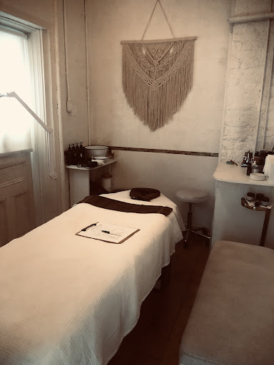 Foot massage with eye stone Head, Facial massage DƩcolletƩ (neck & chest) oil treatment Gua sha Head massage Closing massage (Shoulders)