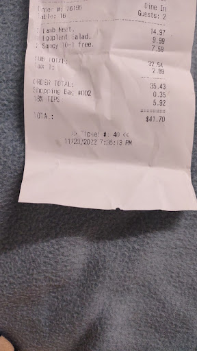 Read moreWe were there for a retirement party on a Saturday night.We had maybe 20 people, but everyone ordered individually, and they were able to bill us separately for each couple. The food that my wife and I ordered was delicious and reasonably priced. Prepared and presented well. The service was pretty good. The waitress was somewhat aloof, but she seemed to get everyone's orders correct. My big beef was with the music. It was loud and did not stop - a mix of American and Middle Eastern for the most part. Loud to the point that it was hard to talk to the people next to you or across the table. I was sitting next to another person in our party whom I did not know. But had to shout to communicate with him. Yes people were dancing and having fun, but there was no let up in the. music from 8 PM until we left around 10. I have been told that there is no or minimal entertainment during the week. I am not a fan of belly dancing, but the young woman who danced was both beautiful and extremely talented. One of the best i've seen. Got the audience involved. Parking in Queens...