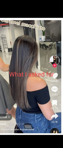 Read moreCame in for highlights with Maria because she also has curly hair, and during our consultation I felt like we were aligned. I shared reference photos and emphasized that I was looking for warm, golden tones—something dimensional, sun-kissed, and natural. I specifically mentioned that I didn’t want anything too white or ashy. Maria agreed and even pointed out that overly white pieces from a previous salon are the result of leaving bleach on too long. She pulled a test strand and it pulled a warmer tone, which gave me confidence to move forward.