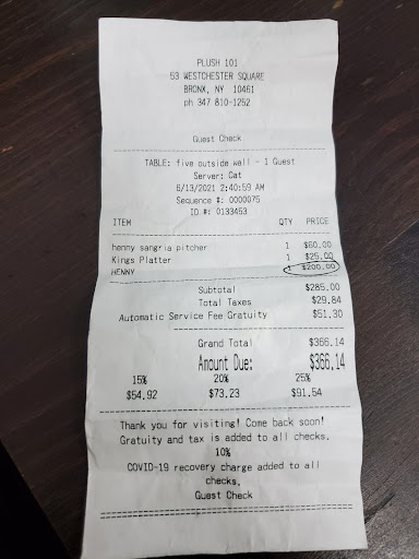 Read moreWorst place i ever visit before in The Bronx. The service are NOT good at all, the bartender disappear for hours no body come to the table ,not even to ask if there were something we need, no napkins offered, bartender make mad face when ever we ask for something. After the order was placed and the Hennessey bottle was open the bartender (girl) approach me and told me everything can be pay with card but the Hennessey and that it was going to be $200 cash, after arguing with the young lady, why it have to be paid cash, she say im sorry i was just confused. Definitely very high price for small bottle of henny, and $40 for hookah service, $20 refills. The henny sangria pitcher taste like agua tindanga. The food that we ordered was already cold. The worst service i...
