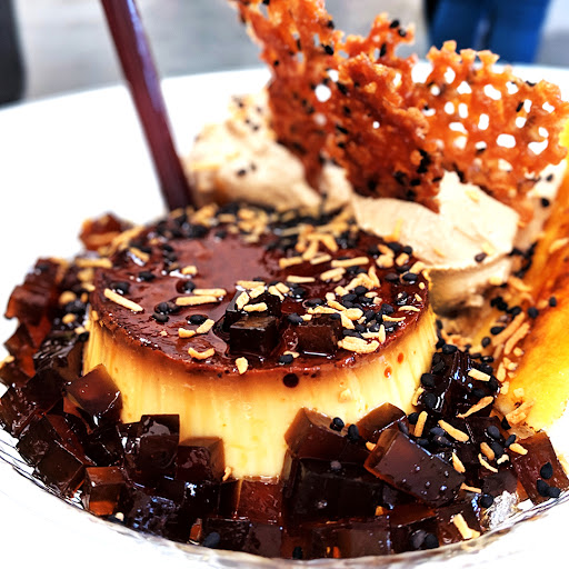 With the clock ticking on our timeslot, we b-line through the sea of dessert lovers and straight to Kochin who is serving up the much anticipated coffee ☕ bomb 💣 dessert. 🤯 A classic flan 🍮 is surrounded by coffee jelly, coffee ice cream, a banana brulee, a lace cookie, and a shot of Vietnamese coffee you drip over to bring it all together. What follows is a rendition of a Vietnamese classic kem bơ dừa (avocado coconut ice cream/smoothie) with the avocado pudding reshaped as, well you guessed it, avocado halves. 🥑 A tornado of textures and flavors, from the coconut ice cream to the cactus jelly, come flooding in with every bite. IG@kochindesserts