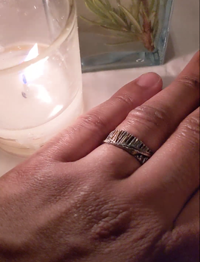 The longer version: I was looking for someone to reuse gold from my great-grandfather's watch and my grandparent's wedding rings so that my ring would contain that history. Most places won't do anything like that. When I found Erin and Specific gravity I was so happy. Not only would she do that, she also talked me through all the ways she could make a ring, and all the embellishments should could put into it. One cuttlefish bone casting later and I have a ring that just...