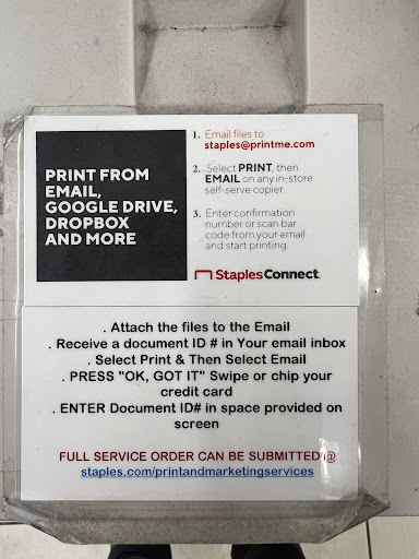 Read moreI ordered 250 business cards using my own design. My first time ordering them from Staples. I needed them for networking event. First, I did not like the process of having to order them online only. Second, Staples did not print them true to color. The design I gave them did not match the cards I was handed. They printed out too dark and not colors I wanted. Third, I ran into Staples General Manager Joanna Pena at the networking event I needed the cards for, incidentally. I shared with her my issues with the printing job. She asked me what store, I told her, then she handed me her card, and told me to email her to have the 250 business cards I paid for printed correctly. I showed her the business card and she agreed the colors did not match my design. Person in store tried telling me that maybe my monitor did not display the colors as-is. I reject this because I paid for the design and it looks the same on every device. In conclusion, the General Manager promised me correction at in-person b2b networking event but has not responded to my email in 3 months. No correction, no refund, no reprints. I will be going elsewhere for my custom printing needs. I have tried handing out the business cards I paid for but people tell me they can't read it and I am stuck...
