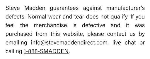 Ā Ā Ā Read moreBUYER BEWARE! I contacted Steve Madden to let them know that a pair of their bandit boots had fallen apart after only 4 wears. This happened because the crossbar on a buckle broke while I was doing nothing more than walking a short distance. I was informed somehow this does not qualify as a manufacturer's defect and because I was about 2 weeks past the 60 day purchase window the best they could do was offer me a 20% discount on a future purchase. This is a completely unacceptable resolution. I used to think they were a quality brand but have unfortunately been proven wrong. I've had walmart boots hold up better than theirs at a fraction...