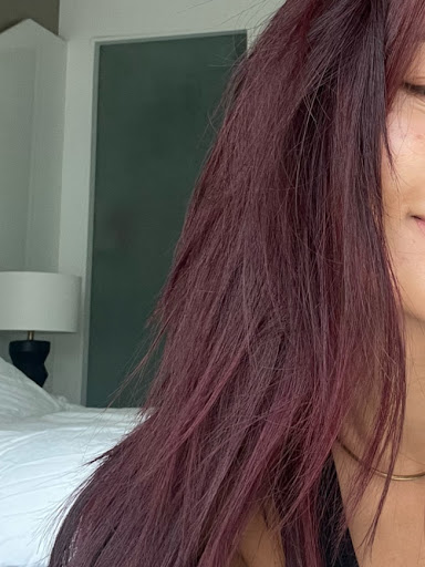 Rating: 5/5 ❤️ Services: haircut (curtain bangs + trim) & full-head colour (muted cherry red)