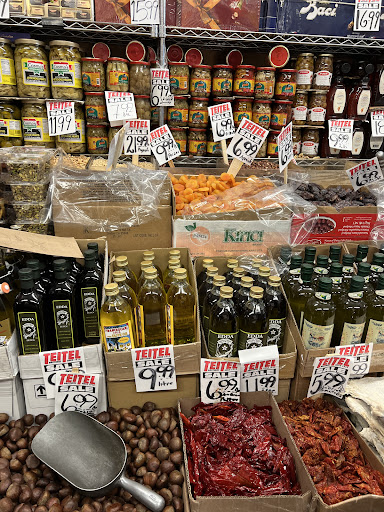 Teitel Brothers is cluttered and the slabs of cured meats hang above the front counter like a somber meat curtain (get it out of the gutter, folks) to blot out any kind of light. It's gloomy in there and still, it's unequaled in the imported Italian products: all types of cheeses in blocks as big as a torso, prosciutto di Parma sliced in tender, razor-thin wisps, barrels of olives cured in oil, varieties of pasta in shapes you've never before imagined, olive oil, Umbrian lentils... it goes on and on.