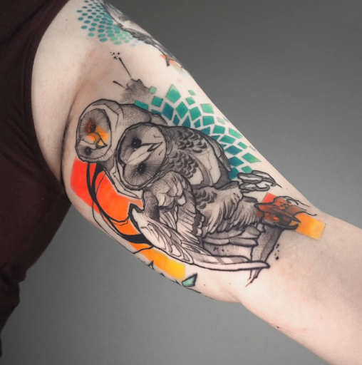 I initially approached Baris with a relatively broad request: I wanted a tattoo with owls that was semi-abstract. I didn't give him much more to go on than that, but what he provided in return was one of the most phenomenal works of art I've ever seen. I'm biased, of course, but his tattooing is next-level, from his initial consulting to design brainstorming to actual application. The colors are vibrant and have shown no sign of fading; I get compliments on it all the time.