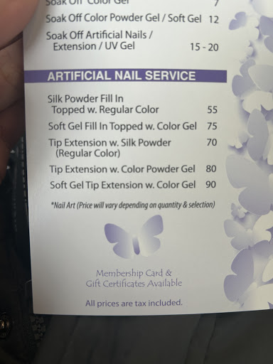 Read moreI came here randomly one day and got a gel manicure. $50 for a gel manicure is too expensive but I should’ve known because of the area. That being said I figured it would be a long lasting manicure for maybe 3-4 weeks, but low and behold my gel nails have chipped and cracked within 4 days of getting them. I don’t even work with my hands so I’m not sure how that even happened. I also noticed how the women working there hound people for tips, I get it, they should be tipped for their hard work but they literally chased down one woman and accused her of not tipping when she did. That’s unprofessional behavior in my opinion and would make any person NOT want to tip. I won’t be spending my money here again for a...