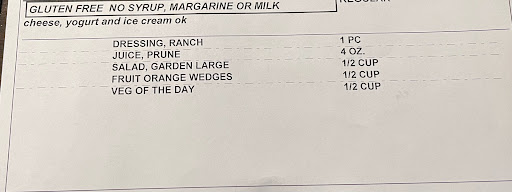 He has no dietary restrictions and his meals arrive LOOKING attractive. The vegetables are always soggy. Any fish or chicken is usually rock-hard, tasteless, and inedible. The first time I was there when such a meal arrived, we called dietary. A frazzled staffer said she can't know the food is bad unless Jack tells her, that he should report it every time, then wait an indeterminant amount of time for a new meal to be sent upstairs. Most days, Jack leaves his dreadful, prepared meal, goes down to the 1st floor snack bar and buys a sandwich.