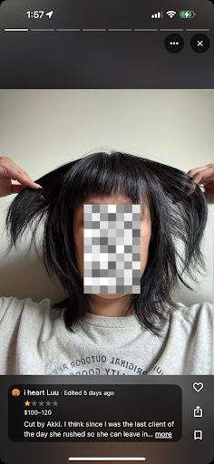 This is actually my second review because my first one was pressured to be deleted in exchange for a refund. Yes, I got my money backâbut money canât undo the damage Aki caused. Every single time I look in the mirror, Iâm reminded of the butchered, uneven, humiliating haircut she left me with.