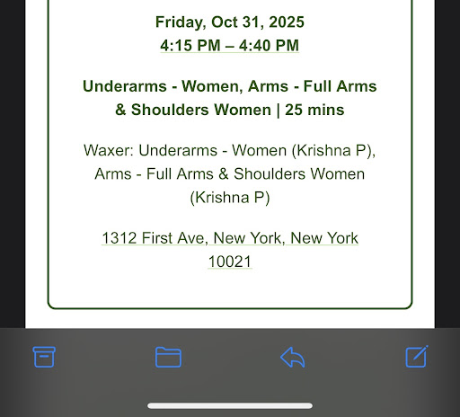 Read moreI got an underarm wax and an above lip area wax and both were very well done, and somewhat exceeded what a typical wax treatment would do in one respect. For my underarms, the woman I worked with, Shraddha, made sure each hair was removed, and that any stray hairs were tweezed off. In addition, she removed extra hair technically above the underarm area, which were darker thicker hairs similar underarm hairs, so of the same hair type, but above the standard underarm area. This is an additional wax that I havenât always seen done at other places that offer wax treatments. The above lip wax I got covered all hair in that area, including off to the sides, and she tweezed a few hairs not removed by the wax. Also, the hair removal was comfortable overall, and seemed to have a less strong feeling of pulling out of hair than it has for other wax treatments...