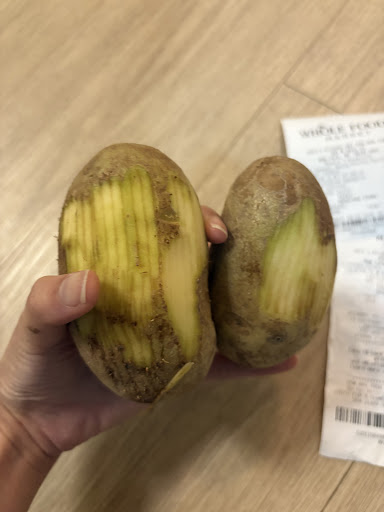 I went back and raised the concern with the manager. He refused to apologize for the negligence, claimed he “wasn’t familiar with that fact” and needed to “check,” yet in the same breath offered to start covering the potatoes to reduce light exposure. That contradiction alone tells me he wasn’t being straight with me.