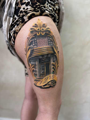 Read moreThank you Roberto so much for your amazing work. I spent a lot of time researching who I wanted as an artist for a tattoo I have not seen anyone have before. I wanted a photo-realistic image of the facade of an apartment building inset in a frame. Roberto combined the elements that I requested into a single image that I was very happy with. He was so patient with any pain or discomfort I had from sitting in the chair for so long as it was a huge tattoo that took five 4-5 hour sessions each. He used so many different shades of yellow and brown that gave the frame beautiful detail, even if at the time he was working on me I wanted it to be over. He applied numbing cream to help with pain and allowed as many breaks as we both needed. He had never done a tattoo like this one before, but I trusted his detail and color work based on other pieces he has done. I highly recommend Roberto...