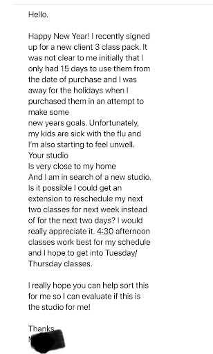 They then said they'd mark me as present so the app I booked the class on wouldn't charge me another extra fee for an unscheduled absence, and told me to lie on the app and say I'd attended, but is that realllllly a favor? Either way, they keep the money and I have to literally ride home in the rain without a class I paid for.