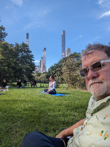 One of my previous yoga instructors had spoken about reaching a point where you become unaware of the world beyond the boundaries of your yoga mat. During this class, we concluded with a meditation session while lying on our backs, and I achieved that state of pure presence. It was a truly serene experience, and coming back to the group, the park, and the New York skyline was a gentle reawakening.