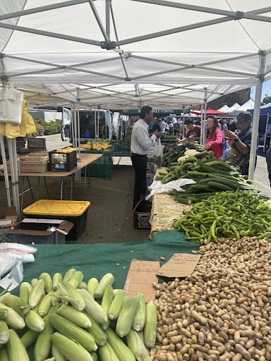 This market is very busy. There are many fruit and vegetable stands. Organic, non-organic. Some selling what they grow, others selling for several farms. I saw many Asian vegetables, a variety of fruit, herbs, roasted peanuts, a few bakeries, kettle corn, hot corn on the cob, corn in a cup, baked potatoes, tacos. There was even some live music which is nice to shop to. Plenty of samples were available, and strawberries were well priced, cheaper than some other markets. It can be hot here, since it's in a parking lot, there's no shade from the blazing California sunshine, so on extra hot days it can be uncomfortable. I recommend bringing something to shade yourself and come early, not only to ensure you don't get overheated but also some things sell out quickly so you...