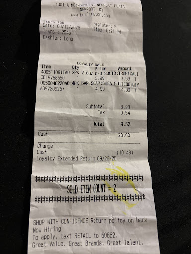 Read moreIf you are BLACK please , do not spend your money here. I watched this older white security guard let everyone else out the door , but when it came to me , which I am a black women. He stopped me and asked me how many items did I have, circled my receipt for no apparent reason. When I asked other customers that came out of the store they told me he DID NOT circle their receipt. I literally came in for two items. Burlington is one of my favorite spots to shop at and to be profiled the way that I was , was completely unacceptable. Black folks don’t even bother shopping here. If you wanna get profiled be my guest. This happened today around 6:21PM. Talk to that security guard about his racist vibes. Definitely did not...