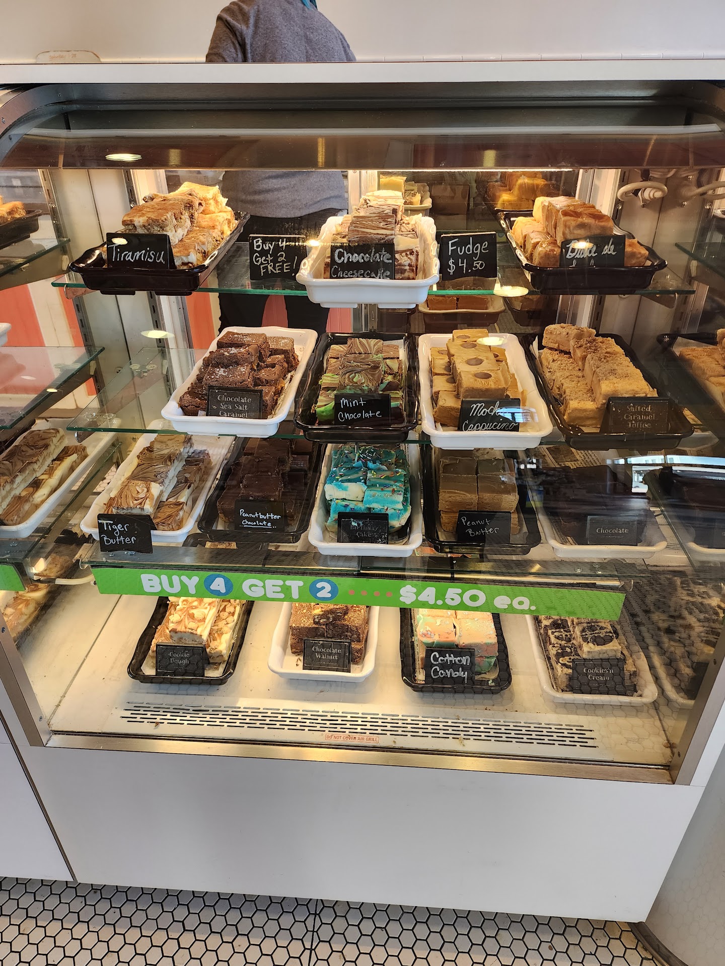 Read moreThis shop is very clean and organized. The staff seem to be in a good mood, but they seemed to be in a rush to be done helping me. They seemed to rush me in picking out my 6 selections of fudge, and hurrying to cash me out even though they weren't that busy. They have a decent selection of sweets, something for everyone. The fudge was pretty good, not too sweet. The peanut butter candy bar was okay, but i liked the pb&j one more. The prices were pretty high, and you don't get a whole lot for your money, but once in a while would be worth the try. Highly recommend at least once to try and see...