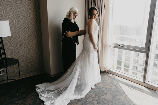 My mom, cousin, and sister accompanied me to my appointment--it was all our first time stepping into any bridal shop, and it was my first time even trying on a dress! First, Danielle sat down with us and got to know a little bit more about me, my fiance, and where we were going to have our wedding. I explained that we were going to get married at City Hall, and I wanted to have the bridal experience despite going this simpler route; I wanted to wear a gown for our intimate wedding reception the day after getting married. Although I was nervous that there wasn't a dress out there for me in this situation, Danielle reassured me that they serve brides in all their journeys, big or small--I appreciated this a ton. Danielle already knew I was looking for a more "clean girl"/silky gown, and she pulled a number of them for me to try, including the ones I screenshotted from the Diana's Bridal Pinterest for inspiration... this was SO helpful by the way! Side note: I highly recommend checking out their Pinterest to see what styles/designers they have before your appointment. After trying on a handful of gowns, I was able to say "YES!" to my stunning Stella York dress... at my very first appointment. Danielle made the entire process so stress-free, exciting, and memorable for not only myself, but also my family.
