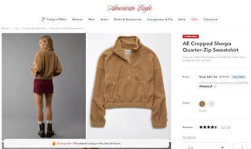 Read moreWent to the AE store in Eastwood Mall on 12/10/2024. Purchased the AE Cropped Sherpa Quarter-Zip Sweatshirt. On sale in store for $59.95, but on their website it's listed for $41.96. They said they'd price match. Wife paid cash and never checked. Went home to find out they did not price match upon looking at the receipt; also found a defect in the wrist elastic on right sleeve. Took it to AE in Southern Park Mall in Boardman OH on 12/12 for an exchange and price match, and was told by Sales Associate since the little tag had been removed (we had both receipt and tag, but daughter removed tag at home when she put it on 12/10) they could not do a return, only an even exchange. I questioned it since the product was defective and they wouldn't restock it for sale anyways, and the fact that replacing the plastic tag was just using the little tag gun to put it back on since the bar code tag was intact. I had to pull out my Karen card and asked to speak to a Manager. Manager said they would exchange it and price match. Sales Associate processed the transaction, gave me the new receipt, and sales tax cash. I asked about the price match. She could not do it since she had ordered the new sweatshirt online. Now if I still want to pursue price matching I will have to come back to AE when I receive the new one and do it all over again. Merry...