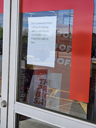 Read moreArrived around 11:30 am on 4/20/24 only to see two other customers be turned away when trying to return an amazon purchase which is exactly why I was there. They also had this sign on the front door. There was NO ONE inside shopping and there were two employees over on the right side when you first walk in which is normally where you return items. Amazon has been pushing Staples as their return location which means Amazon is paying Staples for this service and they are turning customers away! Your sign says, "ship 7 days a week" so you should abide by that. I work from 12 pm - 8 pm M-F which means I cannot use your store as the return location for my items and now I have to pay to use USPS or FedEx. I'll never shop here again. Amazon needs to go back to using Kohl's...