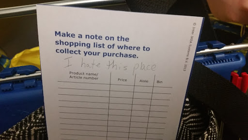 I was close to tears and ready to never set foot in another IKEA ever. Tiffin was a joy to work with and she shared the secret of how to get a person to help in IKEA. You just ask. But, this doesn't work anymore if you have a product problem and have to call customer service.