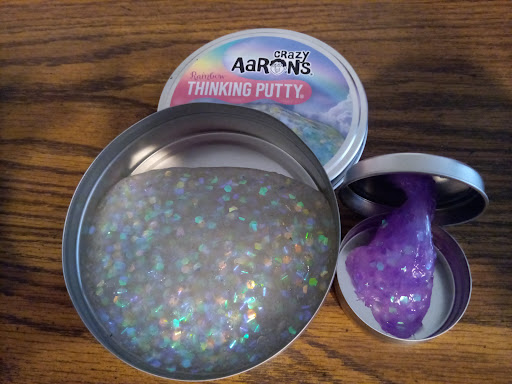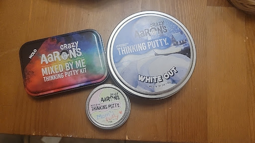 Read moreMy grandson is visiting from Alaska, and my granddaughter had her 5th birthday on Friday. Someone suggested that we visit Crazy Aaron's in Norristown for the occasion. What a well kept secret that was! I did not know Crazy Aaron's was located right in our back yard. This place was great! The young lady and young man working in the Shop were so friendly and kind to my grandchildren. They explained all the different types of putty, showed us some cool things to do with the putty, and then helped us each make our own free mini tin of putty to take home. We even caught a glimpse of Aaron himself, on his way to a meeting. I told my coworkers that this is a trip they must put on their bucket list, as something to do with their kids and grandchildren. We will be back to...