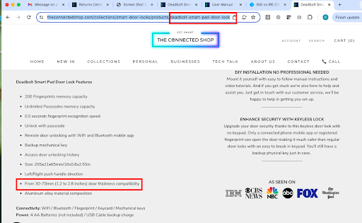 SCAM!!!!!! Below is the letter that I sent the the owner, Nicholas Zennaro, of The Connected Shop without any response. As of today they want me to send a full video of the install of the smart door lock to see if it is not working!! See letter below to Nicholas Zennaro :