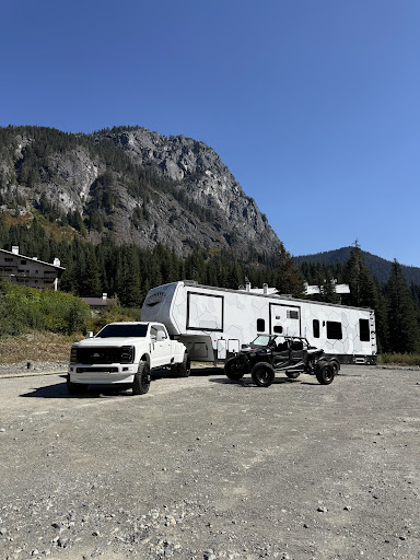 Alpental Parking Lot might not sound exciting at first, but it’s honestly one of the most scenic and versatile spots I’ve come across. Surrounded by dramatic mountain peaks, dense evergreens, and fresh alpine air, it makes an incredible backdrop for photography. I brought my truck and toy hauler here for a photo session, and the views could not have been better. The towering cliffs and snow-dusted slopes created a setting that made the shots look like something straight out of an adventure magazine.