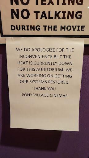 Read moreSince when is it the job of a movie theater to question my family dynamic! girl with short hair and a ring through her nose....My son and 2 adopted boys. We're taken to the theater by my daughter who is 18 to watch the new dragon slayer movie I think its called..I am the parent and approved them to go. I understand they needed adult permission. My daughter turned around to go back to show her license to say it was okay. They asked if she was related and she said yea im related to him pointing at my son. She didn't lie..the lady at the counter said sorry she can't let them in without permission from their guardian. They called me with the predicament. I drove all the way from marshfield high school so that my boys could watch the movie. I walked in and said I was told you need adult permission yet my daughter is standing here as an adult. She said I need their parent. I said excuse me. I am their guardian. That is where it should have stopped and they should have been let to watch the movie. But this girl pretty much wanted my papers to show I was their guardian. Who the crap are you?? The authorities??!?!? I think not. My boys are not of the same skin color. But who are you to question that....pony village cinema do better..this girl needs a lesson in what is acceptable to be questioning.
