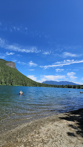 Beautiful, picturesque lake perfect for swimming, kayaking or paddle boarding that's located right off the road in the dense evergreens of north bend, included is a flat, easily walkable, yet still stunningly gorgeous trail that goes almost all the way around the lake, a children's interactive nature education center as well as a semi-challenging hike full of beautiful views right up rattlesnake ridge (the mountain overlooking the west side of the lake) the entrance to the hike and the education center are right by the lake so you can enjoy all these activities in one day, literally the perfect location for any summer activity, only downside is the mountain thats close by is to the west so in summer the sun sets behind the ridge at about 6:30pm then the whole lake is covered in shade thats usually when it clears out so if youd like a quieter experience thats the time to go, the other downside is that there is not nearly enough parking on site to support the influx of people during the summer months, so in the height of summer youd better get there early or you'll most likely be forced to park on the road outside of the recreation area, both sides of the road fill up quickly and can sometimes extend for over a mile so come dillegently or youll be walking to and from your car, other than that it's one of my favorite places to spend time for any reason, as a north bend local I make it up to this lake at least once a week so enjoy it in...