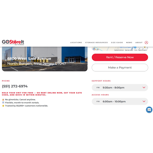 Read moreThis new facility is beautiful and the price is very affordable. đ Its bright, clean, well ventilated with a strong air conditioning system. The location is ideal, just outside of major Hudson County cities and towns. The self service equipment like the dollies and elevators are well maintained. The digital security system makes my family and I feel safe and confident each time we stop in. We made a great choice with this storage location, for sure! Don't miss out, if what you need is a secure, we'll managed facility, in close proximity to your home...