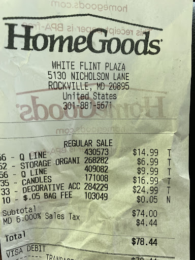 as of 11.11 COVID-19 max. capacity is 120 in store, masks are required, use the disinfected carts in the store, not outside! announcements to stay 6 ft. apart, they have people dedicated by the doors and sanitizer & counter plexiglass shield is available at each register I have been coming here for many many years. Plenty of lot parking, no garage, no cost. The place has never looked a mess, shelves are stocked. They tend to have everything you need for your home.The prices are discounted and many quality imported items. I am going to walk through the store in my mind and put it here for you, so you get an idea of what they sell. Let's go on this mind trip together, shall we? Joking. Note, they will sell sofas and chairs although not in mass quantities. They sell holiday items (outdoor & indoor), kitchen (gadgets, linens, tableware, prep, aprons, pots-n- pans, etc.) home office (few chairs, no desks), foods (snacks, condiments/oils, candies), healthy option (snacks, shake mixes, etc.), dinning (table linens, utensils, serving, cookware, hosting items, etc.) teas & coffees (bags and k cups), bath, bedroom linen (no bedroom furniture sets), outdoor/indoor mats, lamps, wall art (lots to see), children infant - toddler furniture (chairs, lamps, steps) educational toys/games/books/dress up/gift items, stationary items (occassion cards), pets (beds, food, grooming, clothes, bowls, toys), coffee table books, pillows, throws, home decor, home scents (sprays, oils, candles, etc.), cleaning supplies, garden decor & lights, picture frames that hang, side tables, benches, dressers, rugs and misc. They have a clearance section those tend to be items with imperfections/broken/missing piece, or last item in sets. If you can hide it or fix it, its a good discount. You will leave with something, its a lot of items. The staff is friendly and helpful. During the holidays you can find one of a kind. This store is associated with Marshalls and TJ Maxx in the area. If (if!) I find something at a sister store, its the same or $1-2 higher than HomeGoods. Be Safe and...