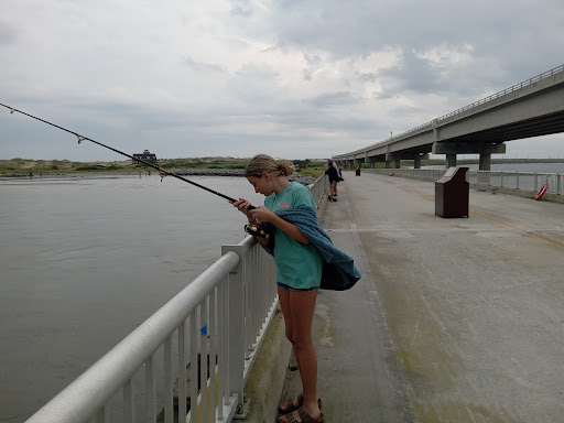 Fragment of the old bridge that has been preserved for fishing in Oregon Inlet. Updated parking area with port-o-potties and a trash bin. Some times of day the new bridge provided shade as you fish. Dogs are not allowed on the pier/bridge, but are allowed on the nearby Mountains to Sea Trail which goes out...