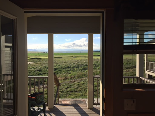 This course is wonderful and worth the trip, even if on a windy morning such as we had on July 4th of 2018. The first image is from our "on-site" lodging, second chosen to show the wonderful airy and open atmosphere you play in and the third shows the brisk wind we enjoyed.