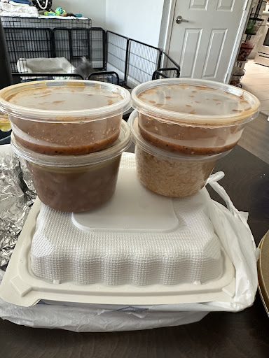 The beans were on the liquidy side. They had large (poblano?) pepper pieces that I liked. The rice was way overcooked but had good flavor.