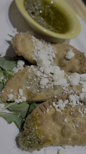 They have a really great selection of local and craft beers on tap. I tried the house Copper Ale which is easy and eminently drinkable--something that could easily be a go to daily beer (if I drank beer every day, and if I wasn't constantly looking to try new things 😉). I also tried Southern Tier's Warlock imperial pumpkin stout. I'm generally not a fan of pumpkin beers because they're too sweet and gimmicky, but this one was smooth and balanced and went well with the pumpkin empanadas we got as snack.