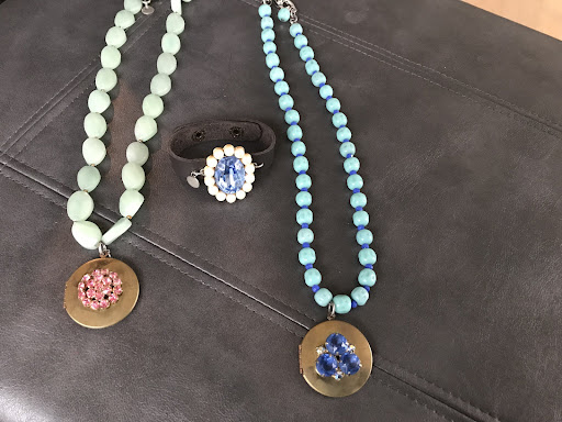 The categories are easily accessible so you can find earrings, bracelets, necklaces etc. Mostly everything is upcycled from vintage jewelry pieces to create new pieces. I like how I can find items by color (they're usually grouped together) so I can match them to another piece of jewelry! Everything is unique so no two items look alike. You'll be wearing an original! There's also gemstones like pearl, labradorite, rose quartz etc.