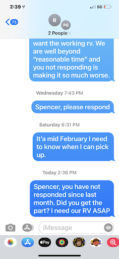 I contacted the shop on September 7 and at their request, sent pictures of the areas of concern. I was told that Spencer would get back to be. I never heard from him. If I were still in Las Vegas, I would have taken it down there, but this isn’t a possibility, which he knew when he was completing the work.
