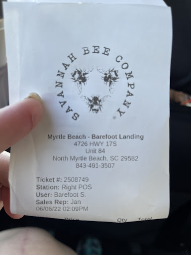 Read moreWent in to Savanah Beach Co at Barefoot landing,. 1st, let me say my daughter & I have absolutely supported them since we stumbled into one, 5 years ago . We even buy the adopt a bee certificates. But today I went in to the one at Barefoot Landing…. The lady, Jan, was very rude. She offered us a taste of the honey’s, I picked up 2 of the 12oz jars that I wanted along w/a box of crackers. We were looking around the store & was headed to the register to checkout when she walked up to me”Here, huff, let me just put these over at the counter.” I told her nicely “it’s ok, I would prefer to carry them myself.” She literally took them out of my hands & proceeded to take them to the counter. Needless to say, I let her keep them. I will never be back to...