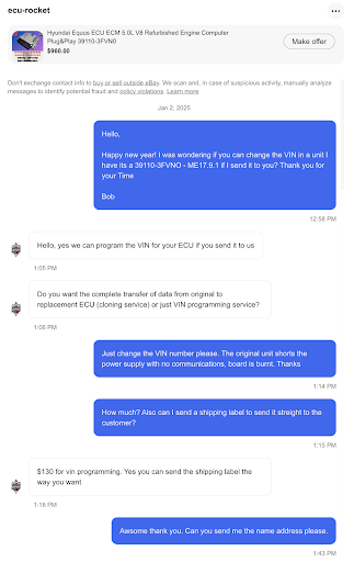 Read moreMy experience with the ECU Team was exceptional. When my 2011 4.6 Liter Genesis Sedan with 95k miles failed to start, I had it towed to a trusted local mechanic. My mechanic did his best but advised that their equipment could not communicate with the vehicle’s computer and I needed to take it to a dealership. I took it to the dealership and soon learned that the ECU/ECM had failed and would need to be replaced. The only thing more astonishing than the price was the amount of time it would take to actually receive the new computer. They could give me no true estimate of a delivery date, beyond “a long time.” And this is not 2020. We are well beyond the supply chain issues of years past. The ECM for somewhat older vehicles must not be a priority for manufacturers. Being stuck without the vehicle, I began researching alternatives and came across the ECU Team. I contacted them, explained the problem and they quickly were able to offer a solution. I trusted their expertise and moved forward with their recommendation. Their communication was fantastic throughout the process. Within a matter of days, I received the call from Edward that my car was ready and running great. And this was at a fraction of the cost it would have been to replace the ECM at the dealer. Not to mention, it was done in days, not (at least) months if not never to wait for an OEM part. Between Edward and Oleg who represent the ECU Team, these guys are reliable, caring and trustworthy. There was a lot of debate on the web about the feasibility of any alternative to a brand new ECM from the manufacturer. These guys proved it can be done, and were honest. If they say they can do it, they can. Highly...