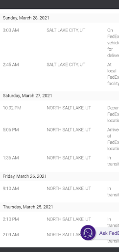 Read moreTo preface, we have packages shipped to my work all of the time and they are usually late or delivered to the wrong suite. This is a long time coming, here is the reason I'm giving them 1. I had a business package ship early Thursday the previous week with an ETA of Tuesday before end of day. Package details never updated past Saturday saying it was in Rawlings and in transit to North Salt Lake. Monday it still said it was in transit but had the same delivery date so I updated a client letting them know it would be here Tuesday. I got a notice from FedEx Tuesday morning reminding me it was going to deliver before the end of the day, however it still said in transit. I checked again around 1 PM but there was no change. I called FedEx and was assured that their scanning system had been recently having issues updating correctly and that the product would be to me before the end of day. 2-3 hours before they closed I got an email message saying my order had been updated to deliver on Wednesday with no prior notice or outreach. I called FedEx again and expressed my frustration as not only had their site been telling me it would deliver Tuesday but their employee I talked to earlier as well. I was forwarded to someone higher up who explained that it had just arrived in North Salt Lake, it wouldn't be available to pickup Tuesday as it wouldn't be offloaded until Wednesday, and that technically it was not their fault as they had 4 business days to deliver my product and they don't count the day it was picked up as a business day even though they had it before the afternoon. As this was a package that had to be signed for I had to reschedule my entire day to make sure I was at my business for extended hours Wednesday,as well I had to make additional phone calls to explain to the client why I wouldn't be able to get it to them until Wednesday. My package did arrive Wednesday afternoon, but the boxing was damaged and the delivery guy didn't even notice the giant hole in the side of the box. He supposedly updated it to mark it as damaged after I'd signed for it but I highly doubt he actually did anything. Luckily it was packed very well with multiple layers of protection so everything worked when I turned it on. FedEx is completely unprofessional, I have never had any problems with UPS or Amazon delivering to my business place before but it's constantly screwing up when they deliver to me. I wouldn't even give them 1 if I had the option, if they screw you over just remember it isn't their fault; somehow it is...