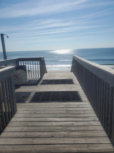 There were both stairs and a ramp option to get across the dune and onto the beach. The beach was fairly crowded in the afternoon but if you go out in the morning or evening, you’ll get a decent spot. The people who rented umbrellas and chairs tended to get the best spots. People also left their tents and chairs unattended, throughout the day so they could keep that same location on the beach when they were ready to come back out. Also, the beach was clean with the exception of the occasional piece of garbage. There were lots of shells and sharks teeth to be found. Even some sea glass. We did not venture to the pool, but walking past it, it seemed nice. Music was played for those who were in the pool. There are grills between two of the buildings that a lot of people utilized.