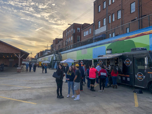 Very nice newer venue. Perfect for many different event types. Permanent bathrooms on site alone with stage perfect for concerts. Location is also a Wi-Fi hotspot. Area off to the side referred to as the "beer garden" offers a few benches to sit and relax. Venue is very well maintained with nice landscaping and a mural of some of the town's highlights. Location is also below the North Wilkesboro police department who often monitor the events that take place for added safety...