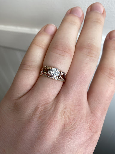 I loved the jewelry and experience so much that I reached out to the HSQ location a few weeks later to place an order for my wedding band. I already bought one, but wasn't in love with how it framed my engagement ring. Yet again, the Rebekah Brooks team went above and beyond to not only mirror my current rings, but then took the time to place each of the rings I was curious about with the stack so I could see how it would look.